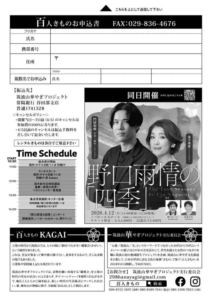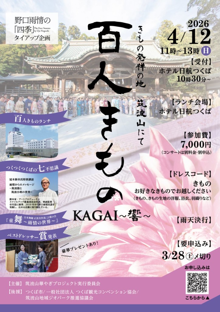 筑波山に華やぎ文化創造を目指して、日本が世界に誇る文化の象徴「着物」で集う「百人きもの」を2018年から開催し、今回が6回目。
